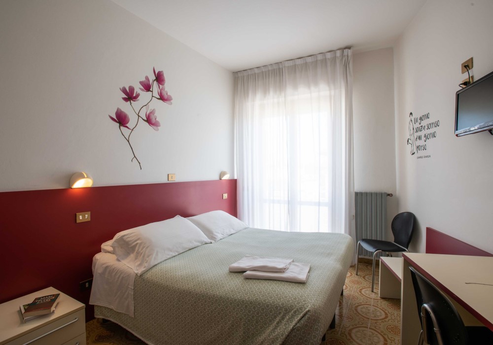 La camera matrimoniale confort grazie ai suoi mq 18, offre maggior spazio utile per chi vive piu’ ore nella camera, per chi viaggia con molti bagagli o attrezzatura di lavoro, per chi ha bimbi piccoli e necessita di culla aggiunta.